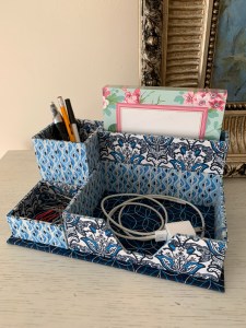 Cartonnage is a French word describing the creation of beautifully finished boxes, books and other useful items, using paper chipboard as the primary material, along with decorative paper, fabric and trims.